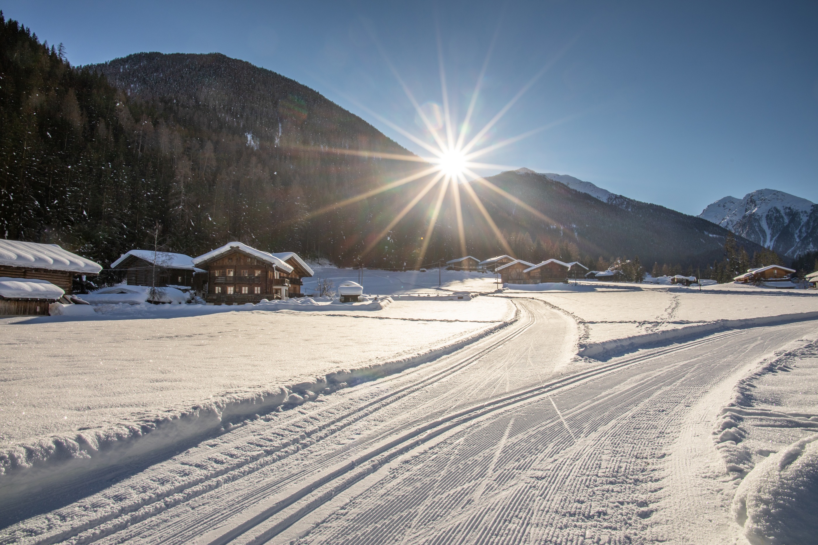 Direkt an unseren Ferienwohnungen in St. Nikolaus führt die Langlaufloipe vorbei – ideal für alle, die den Winter aktiv genießen möchten. Die Panoramaloipe im Ultental verläuft vom Ort Kuppelwies über St. Nikolaus bis nach St. Gertraud im Nationalpark Stilfser Joch. Mit einer Gesamtlänge von 25 Kilometern ist die Loipe sowohl für klassische Langläufer als auch für Skater ein beliebtes Ziel. Die abwechslungsreiche Strecke eignet sich für Einsteiger und erfahrene Sportler gleichermaßen und führt durch verschneite Wälder, weite Wiesen und vorbei an traditionellen Bauernhöfen.